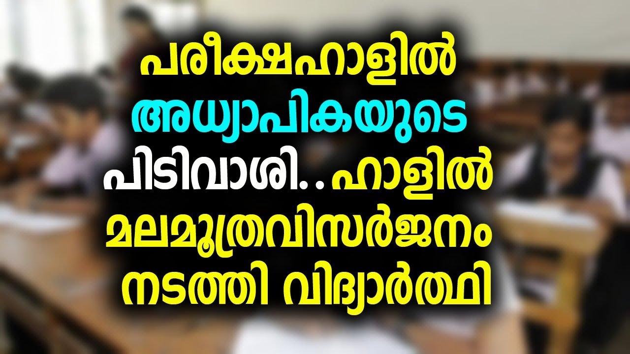 എസ്എസ്എൽസി പരീക്ഷയ്ക്ക് ഇടയൻ അദ്ധ്യാപിക ടോയ്ലറ്റിൽ പോകാൻ അനുവദിക്കാത്തതിനെത്തുടർന്ന വിദ്യാർത്ഥി പരീക്ഷ ഹാളിൽ മലപ്പുറ വിസർജനം നടത്തിയും രസതന്ത്രം പരീക്ഷയ്ക്കെടെ അസ്വസ്ഥത അനുഭവപ്പെട്ട വിദ്യാർത്ഥി ടോയ്ലറ്റിൽ പോകാൻ അനുമതി നേടിയ അധ്യാപികയെ സമീപിച്ചെങ്കിലും അധ്യാപിക അനുവാദം നൽകിയില്ല ഇതോടെ വിദ്യാർഥി പരീക്ഷ ഹാളിൽ മലമോറാവിനും നടത്തുകയായിരുന്നു.