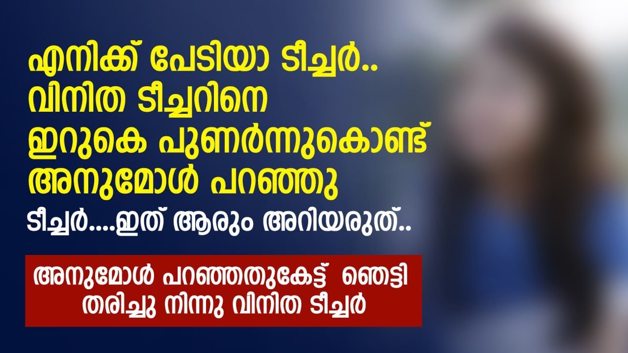 അന്നത്തെ മലയാളം പിരീഡ്സ് ക്ലാസ്സ് കഴിഞ്ഞു എന്ന് ടീച്ചർ ക്ലാസിൽ നിന്നും പുറത്തേക്കിറങ്ങിയും ടീച്ചർ പിന്നിൽ നിന്നും ഏതോ കുട്ടിയുടെ വിളി കേട്ടു വനിതാ തിരിഞ്ഞുനോക്കിയും തന്റെ ക്ലാസ്സിൽ പഠിക്കുന്ന അനുമോൾ വിഷമത്തോടെ തന്നെ നോക്കി നിൽക്കുന്നു എന്താ അനുമോളെ എന്തിനാ വിളിച്ചത്? ഒന്നുമില്ല തന്റെ ചുമൽ കുലുക്കി കൊണ്ട് അനുമോൾ പറഞ്ഞു പിന്നെ എന്തിനാ.